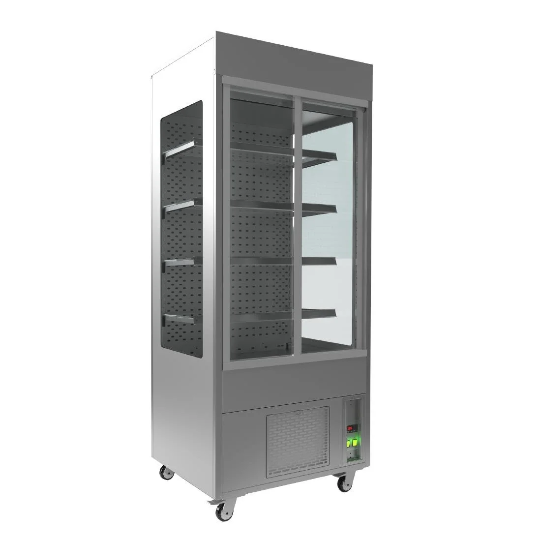 Upright retail merchandiser. Glass swing door. Aluminium exterior with environmentally-friendly system and comprehensive 5 year parts & labour warranty. Extra bright LED interior lighting runs the door length, for bright and even illumination of your product display Illuminated sign panel, customisable with your graphics Entire cabinet structure is foamed-in place using a high density polyurethane […]