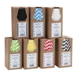 8" 6mm Bore Paper Straws (Yellow & White Striped)