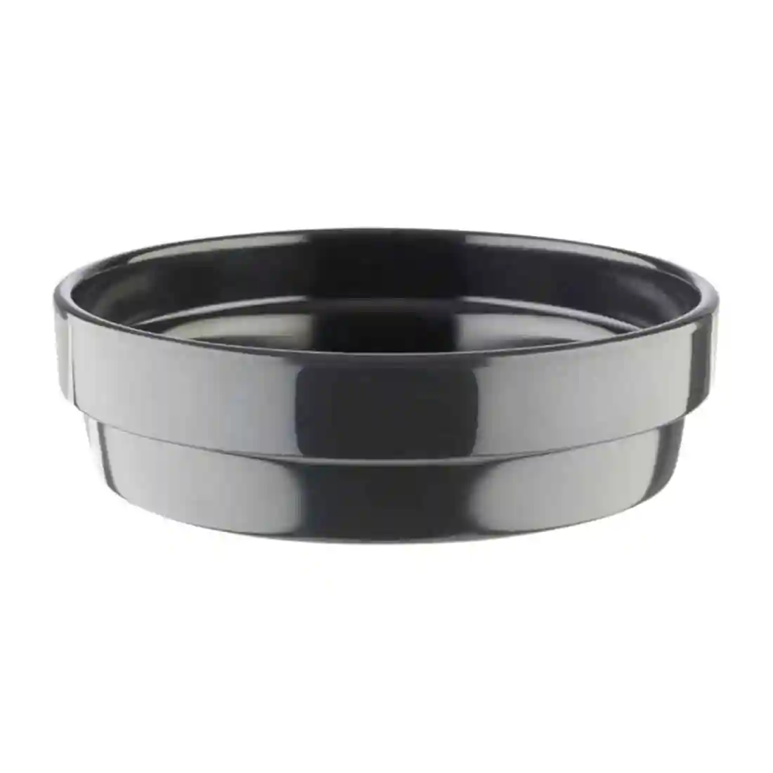 Finished in a gloss graphite grey, this durable and hardwearing melamine pot is the perfect shallow dish for serving a variety of finger foods or as a simple and effective way of serving tapas and mezze items. 120mm wide, this attractive pot is also available in white and terracotta and is perfect for demanding commercial environments. Suitable for use in commercial dishwashers and microwaves.