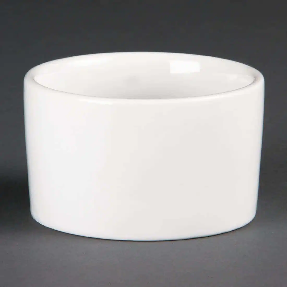 An appealing, pure white 3½” contemporary ramekin from Olympia, designed to provide a great value and hardwearing porcelain crockery solution for busy hotels, canteens, casual dining restaurants and cafes. Strengthened rolled edges ensure the ramekin is chip resistant and the fully vitrified body gives great glaze durability, making it able to withstand the rigours of the professional catering environment. The ramekin is stackable, helping maximise storage space, and oven, microwave, dishwasher and freezer proof.