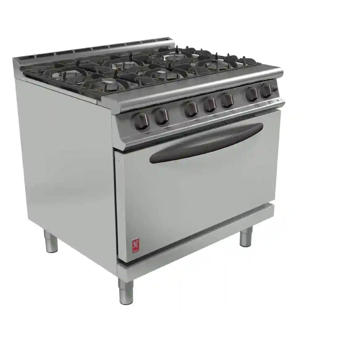 An impressive gas range with six powerful open top burners and oven, which is sure to become the cornerstone of your kitchen. The burners are energy efficient with a quick heat up and reduced waiting time. The 2/1 Gastronorm compatible oven has a drop down door which provides a convenient resting area for trays and containers en route to serving, and an easy to clean vitreous enamelled oven chamber.