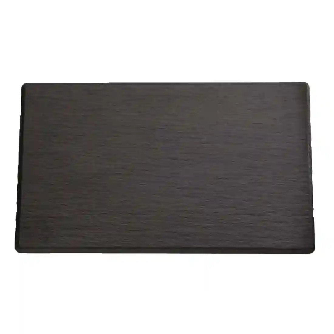 Melamine trays which are perfect imitations of slate. Perfect presentation for cheese, chocolate, pastry and meat. Durable, with non- slip feet. Dishwasher safe.