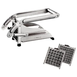 Stainless steel. Comes supplied with pusher and two interchangeable blades.