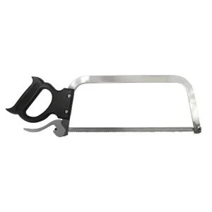 Stainless steel. Features a serrated edge.