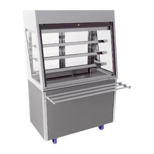Capacity: 3x 1/1 GN. With sneeze screen & drop down round tube trayslide
