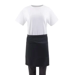 Look sharp with Chef Works half bistro patch pocket apron in stylish black to pair with all styles of hospitality uniform, anywhere.