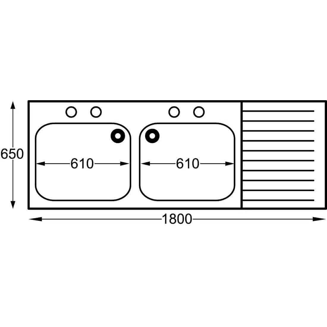 Size: 900(H) x 1800(W) x 650(D)mm. Double bowl with right hand drainer. Flat packed. E20616R