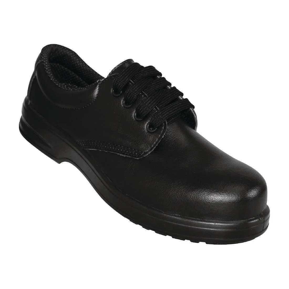 Keep your appearance smart and your feet safe with these Slipbuster Koralis safety shoes. The black polyurethane (PU) uppers are easy to keep clean for a polished and professional look, while essential safety features reduce the risk of slips or injuries – perfect for staff who regularly switch between front and back of house duties.