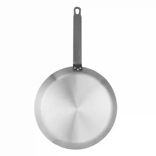 Create delicious pancakes and crepes quickly and easily with this non-stick crepe pan from Vogue. The pan features Teflon Platinum Plus non-stick coating that helps pancakes to slide off when cooked, as well as making them easy to flip! The long handle keeps your hands away from flames and a hook in the end makes the pan perfect for hanging. Made from anodised aluminium, the pan resists constant use in busy commercial kitchens.