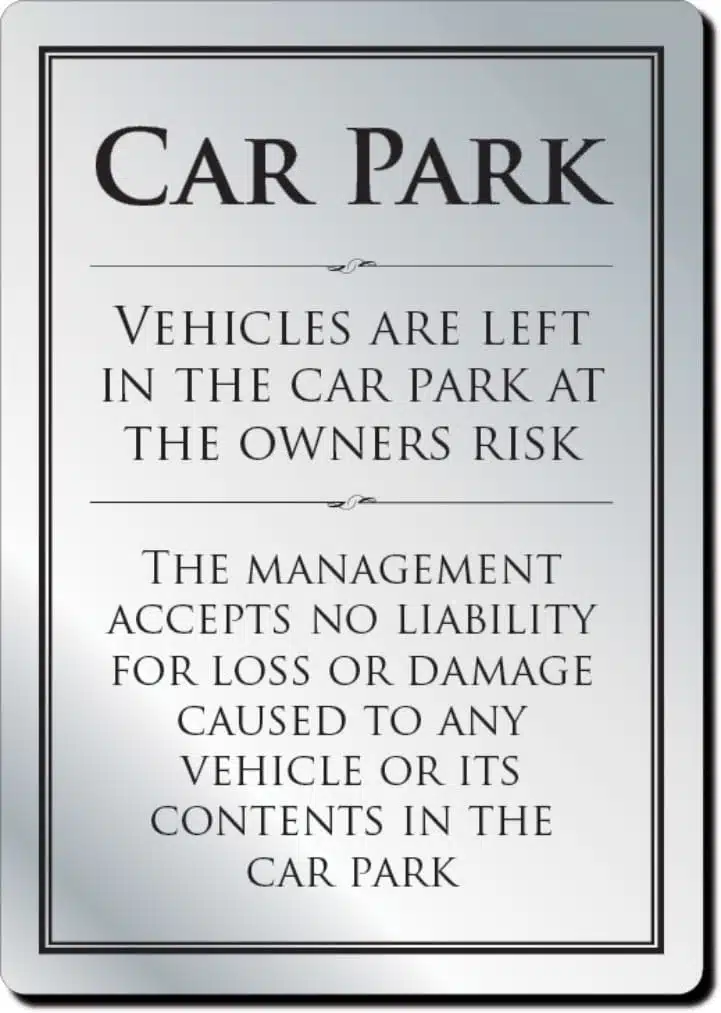 Car Park Disclaimer Notice Bar Sign – Silver - Bar Signs & Restaurant Signs