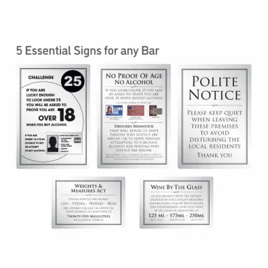 As customers visit the establishment, the hidden presence of these signs conveys a multifaceted message. They testify to an establishment’s commitment to responsible alcohol service and adherence to the latest UK Licensing laws.