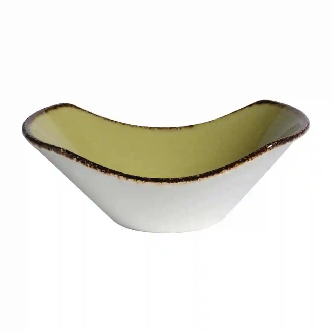 The warm, rustic style of this 6.5″ Scoop bowl in Olive is complimented by its strengthened, durable alumina vitrified body. The Terramesa range is a response to the revival of colour on the table top, and the craft-inspired shades mirror the process of taking food `from earth to table’. The bowl is hand-finished with edges that carry a textured reactive glaze.