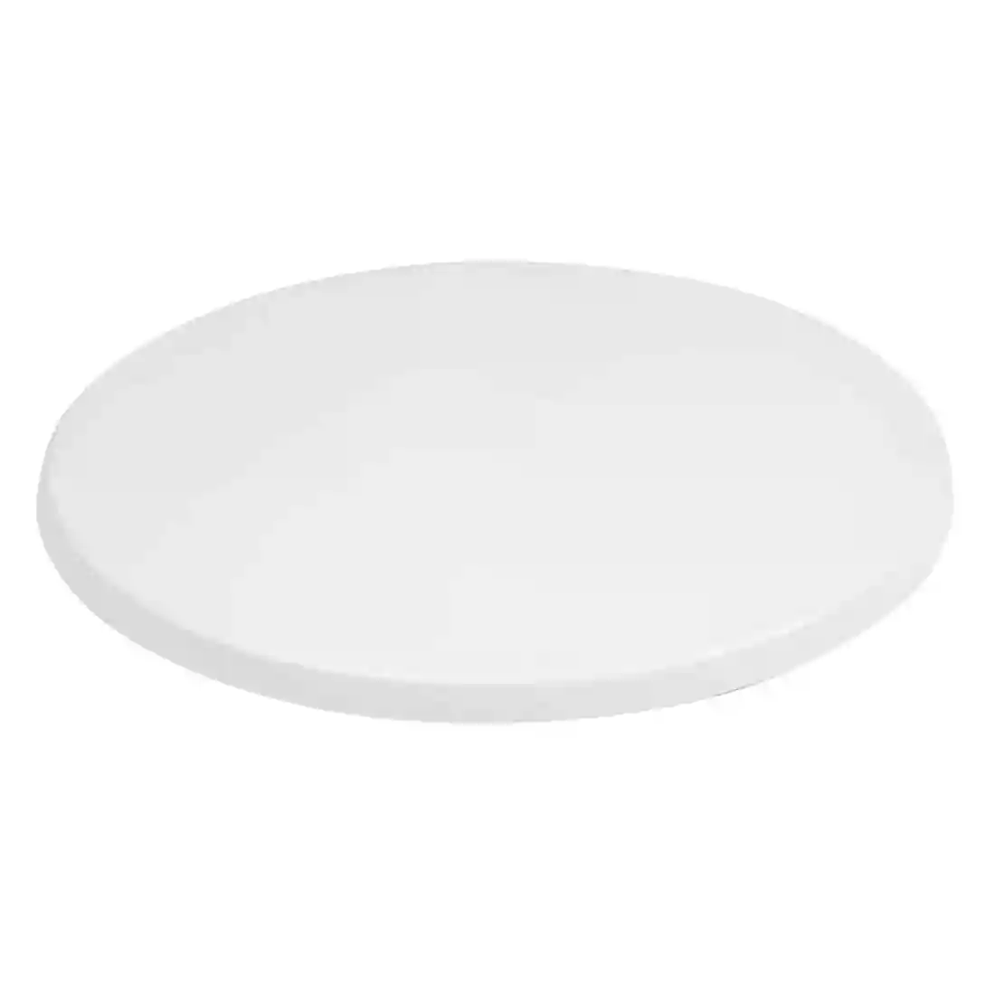Pre-drilled seamless table top, finished in white for a neutral, clean look. Heat and water resistance guards against burns and spills, while the circular design eliminates sharp corners and danger of injury. Great for use indoors in cafes, canteens and restaurants.