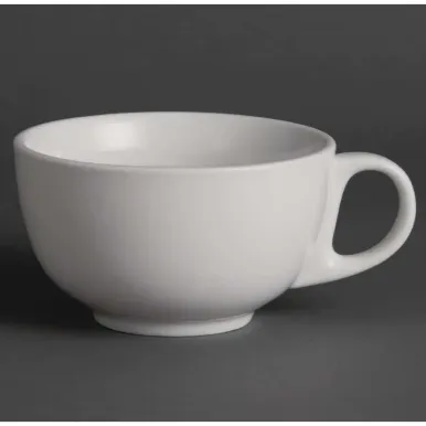 An appealing, pure white cappuccino cup from Olympia, designed to provide a great value and hardwearing porcelain crockery solution for busy hotels, canteens, casual dining restaurants and cafes. Strengthened rolled edges ensure the coffee cup is chip resistant and a fully vitrified body gives great glaze durability, making it ideal to withstand the rigours of the professional catering environment. The cup is stackable, helping maximise storage space, and is oven, microwave, dishwasher and freezer proof.