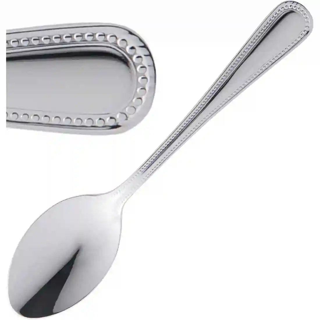 Mirror finished 18/10 stainless steel cutlery, with an attractive beaded border on the handle. Dishwasher safe and sold in dozens.