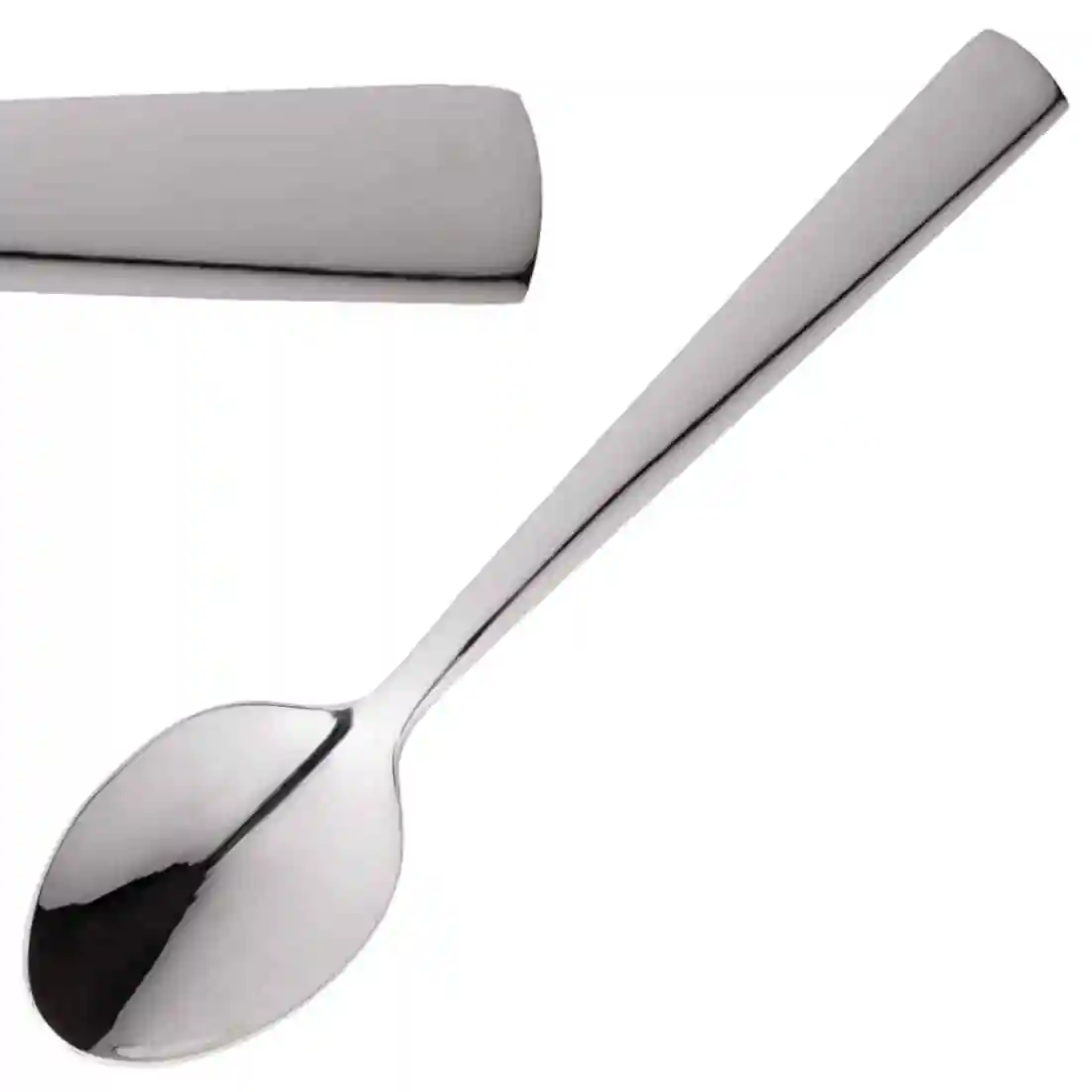 Sleek and minimalist, this strikingly modern design is made of highly polished 18/10 stainless steel. Sold in dozens.