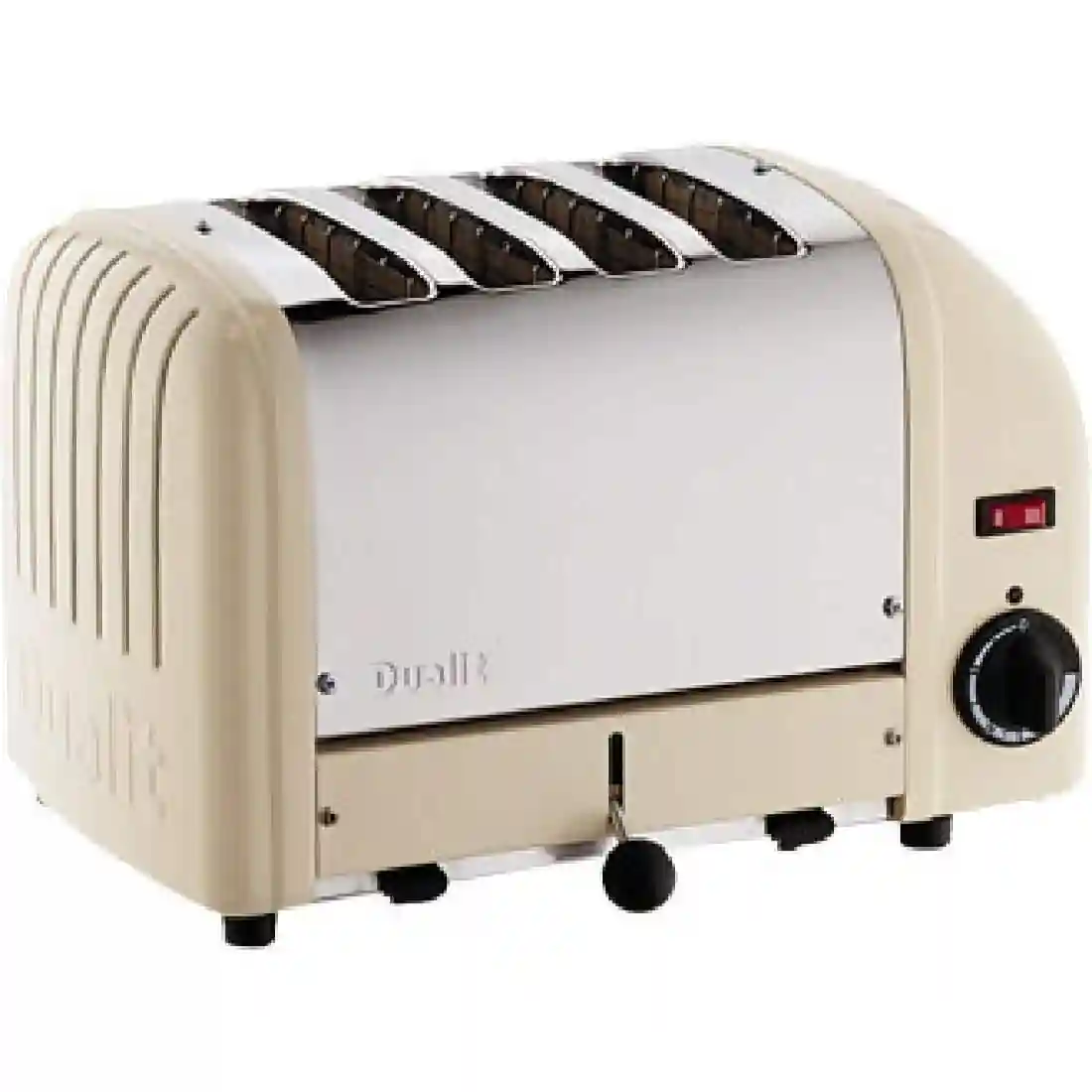 Designed to withstand the rigours of regular use within a commercial kitchen, this 4 slice toaster from Dualit in utility cream features award-winning ProHeat elements and extra wide 28mm slots, to fit even the thickest bread, teacakes and sandwiches (using a Dualit sandwich cage, available separately). A mechanical timer allows precise control of toasting and a manually operated ejector lever keeps items warm until required, while a high lift mechanism allows easy and safe removal of small items. This Dualit toaster also features a selector switch meaning only the slots needed are heated, saving energy in quieter periods and allowing for consecutive toasting.