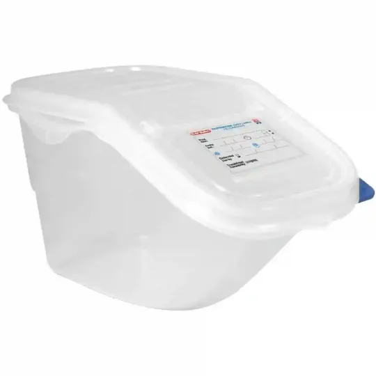 Stackable containers that allow access to content even when stacked and use FIFO (First In, First Out) rotation system. Dishwasher safe and supplied with colour coded clips.