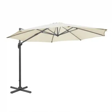 Make the most of your outdoor space with this heavy-duty 3.5m parasol from Bolero’s Venice range. Featuring 360° rotation, this cantilever-style parasol offers optimal coverage all day long. The thick, 245gsm polyester canopy provides excellent sun protection, with UV and flame resistance. Constructed with 8 high-quality ribs and a robust pole, it includes a convenient crank handle for easy opening and closing of the parasol’s canopy.