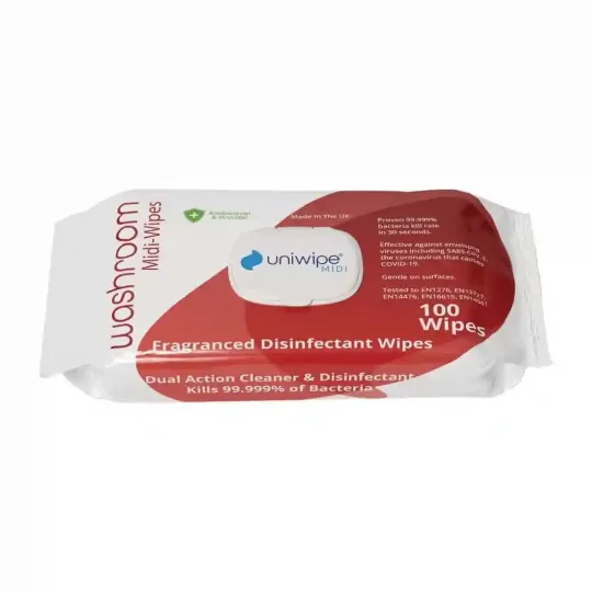 Uniwipe Washroom Sanitising Midi-Wipes (Pack 100)