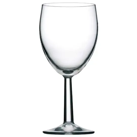 Robust wine goblet, taller than standard economy glasses. Two-piece construction with blown bowl.