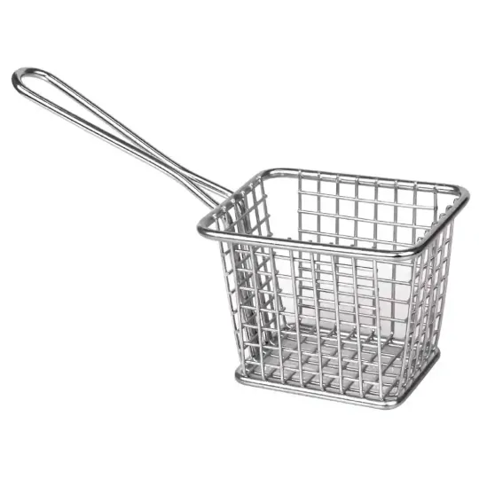 Unique and quirky square shaped stainless steel presentation baskets with a long handle, these are perfect for serving small side orders such as chips or tapas. These baskets are dishwasher safe and will add that little something different to your establishment.