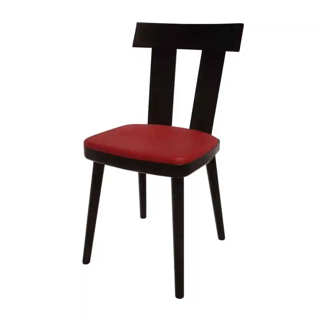 Thanks to its curved back, red seat pad and charcoal-inspired frame, the Bolero Bamba side chair from the Bespoke range adds a stylish and modern touch to any venue. Made from robust hardwood, the chair’s frame is able to handle even the most demanding of commercial use without damage. The wood is carefully selected for its strength and aesthetics, ensuring that the chair not only stands up to the rigours of daily use but also adds a touch of elegance to any environment.