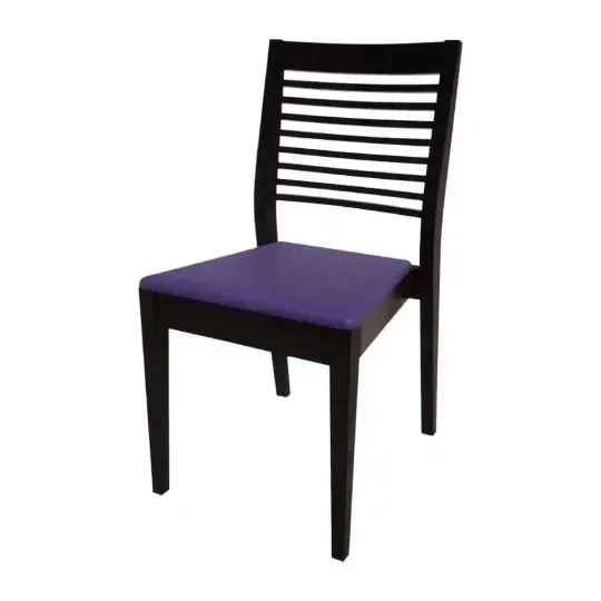 With a smart slatted back design, the Bolero Bespoke Marty B stacking chair offers timeless elegance and sturdy support, making it ideal for any dining space. The chair is meticulously crafted with a solid wood frame and its seat pad is upholstered in high-quality faux leather.